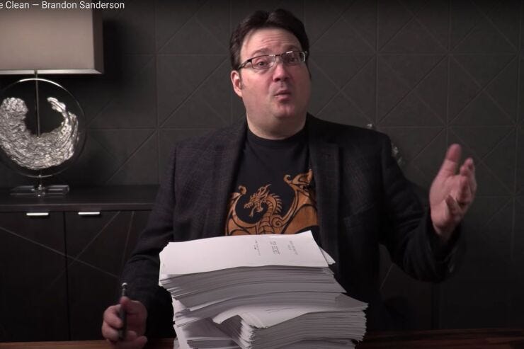 How did he do this? To use his own words, Brandon Sanderson writes like an accountant. He shows up, clocks in, and puts in the work. Something that is perhaps uncommon in the creative space that’s filled with “muses” and “writers’ block.” And during the pandemic when everyone was shut inside, he just did more of that accountant work than anyone reasonably would.